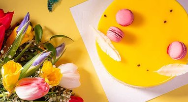 Tort musowy 6-8 porcji (18 cm średnica) o wybranym smaku + wybrany bukiet z Pracowni florystycznej Kwiat Lotosu.